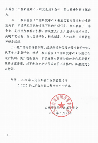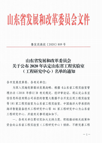 近日,山东省发展和改革委员会公布2020年认定山东省工程实验室(工程研究中心)名单,公司环境与化工学部牵头、BV伟德官方网站申报的化工资源清洁利用工程实验室被认定为2020年山东省工程实验室。