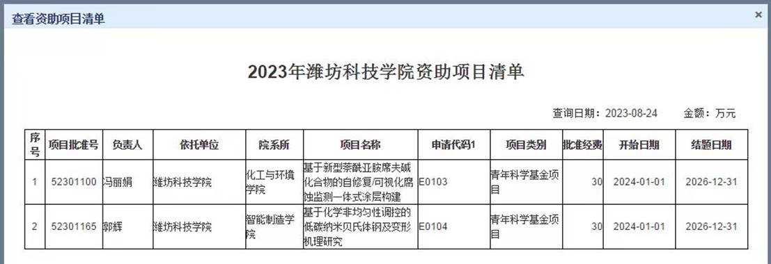 8月24日,国家自然科学基金委员会官网发布了《关于2023年国家自然科学基金集中接收申请项目评审结果的通告》。公司冯丽娟博士主持项目获准2023年国家自然科学基金立项。