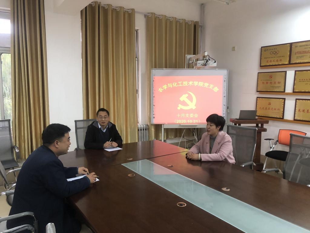 2020年10月21日,农学与化工技术公司党支部在党员活动室举行十月支委会。会议由支部副书记李建永同志主持,会议内容主要有:安排本支部党员学习教育工作;研究本支部推选入党积极分子和发展党员工作;研究新成立党支部召开党员大会事宜;研究本支部党建“三个好”、党建品牌建设和示范党支部创建等工作;研究加强党员日常教育管理,持续开展“党员亮身份、亮形象、亮承诺、亮责任,支部强阵地”活动,引导广大党员、入党积极分子在疫情防控、脱贫攻坚、人居环境整治、双招双引等各项工作中发挥先锋模范作用,奋力攀登、勇争一流,为全市高质量发展凝聚组织力量。
