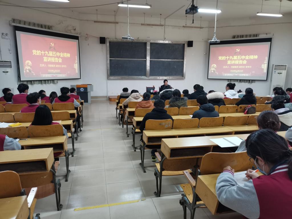 2020年12月23日,农学与化工技术公司党支部在党员活动室组织十二月集中学习,会议由党支部副书记李建永同志主持,集团领导杨专志同志到会指导。全体教师集中学习了《中国共产党章程》;观看《为了和平》。杨专志同志为全体师生进行党的十九届五中全会宣讲。