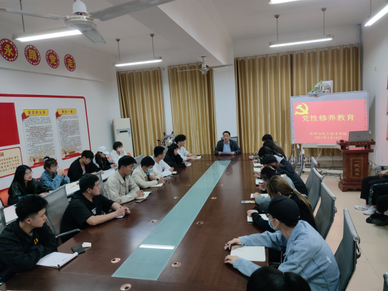 4月19日,农学与化工技术公司党支部副书记李建永带领员工会干部和全体入党积极分子在教学楼208会议室开展党性修养教育活动。