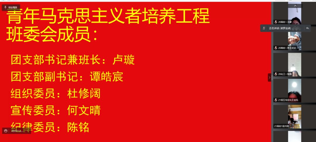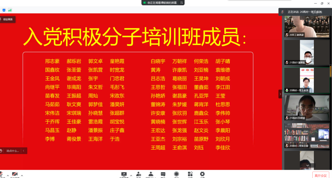 为引导广大团员青年树立正确的价值观念,培养造就一批信仰坚定、能力突出、素质优良、作风过硬的青年马克思主义者。BV伟德官方网站于3月13日开展线上青马班暨入党积极分子培训班开班仪式。本次会议由党支部书记郭振鹏、党支部副书记魏巍、团总支书记董立斌、党建负责人王鑫、全体辅导员及入党积极分子和全体青马班成员参加。