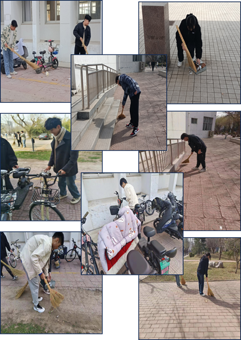 活动中,同学们配合默契,一不怕脏、二不怕累。有的打扫教学楼周围区域环境卫生;有的认真摆放学院周边停车区的电动车、自行车。纵使气温骤降、寒风凛冽,却依然抵挡不住大家那颗炙热的内心。大家分工明确,相互配合,充分体现了公司入党积极分子们“奉献、友爱、互助、进步”的志愿服务精神。