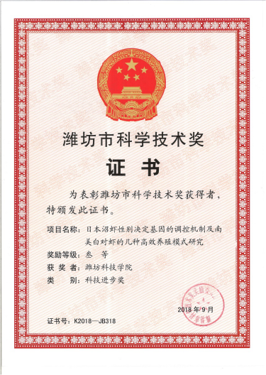 李法君,副教授,毕业于南京农业大学水产学。主持:山东省自然科学基金面上项目1项(ZR2016CM12);山东省高校科技发展计划项目1项(J17KB112);潍坊市科技发展计划项目1项(2019GX080)。参与:国家自然科学基金2项(31572617, 31402280),山东省自然科学基金1项(ZR2017QC004)。以第一作者在Environmental Pollution, Gene, General and Comparative Endocrinology, Comparative Biochemistry and Physiology - Part D等杂志发表SCI论文7篇;以第一完成人和第二完成人分别获潍坊市科技进步奖1项;以第一完成人获寿光市科技进步一等奖1项。2019年9月荣获“首批寿光市有突出贡献中青年专家”。
