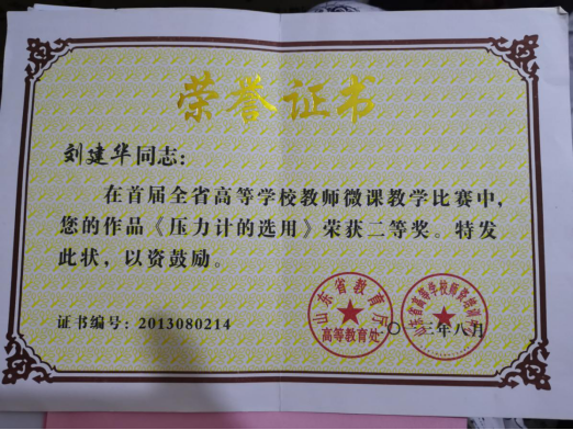 首届山东省高校微课教学比赛二等奖;