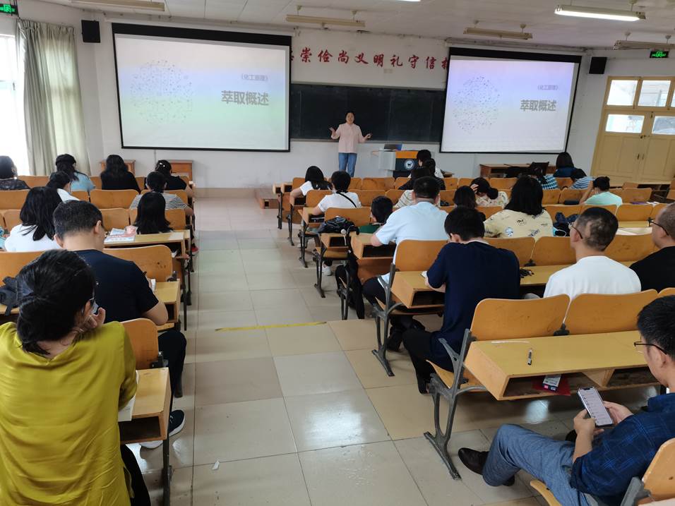 化工系的彭彬老师是第八届、第九届山东省高校青年教师教学比赛一等奖获得者,具有丰富扎实的教学经验。此次示范课彭彬老师采用案例式教学法,以屠呦呦团队提取青蒿素为导向讲解了萃取化工单元操作。彭彬老师用工程的严密性与逻辑性精彩呈现了导课、授课、小结、反思等整个教学过程,同时注重专业课程与经验选择的衔接,适时在授课过程进行了思政教育,效果较好。