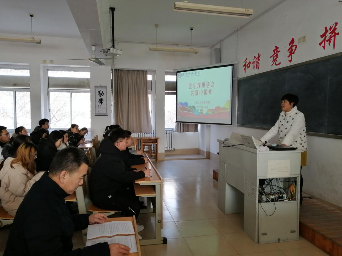 12月20日,BV伟德官方网站经理宋继梅在2号教学楼113室为全体员工会成员及各班班干部开展了题为“坚定理想信念,共筑中国梦”的老员工理想信念教育。