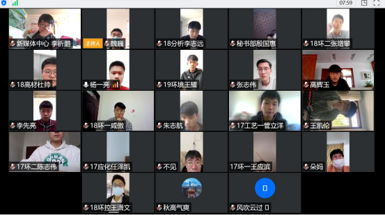 宋继梅代表全体老师对同学们进行了亲切的问候,鼓励大家畅所欲言,积极提问并对老师们的线上授课提出恳切的意见和建议。各班班长踊跃发言,就住宿费用退还、宿舍物品安全存放、教师线上授课效果、员工居家学习效率、考试及过程性考核措施、教材发放、考研方向咨询、补考安排等方面提出问题,表达了意见和想法。针对这些具体问题,各与会分管干部给出了云现场解答,不能现场解答的一一记录,会后将认真研究相关对策,尽快抓好落实。