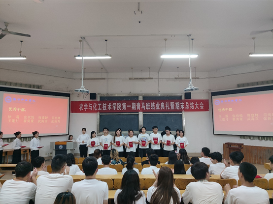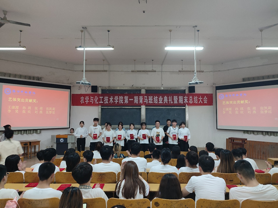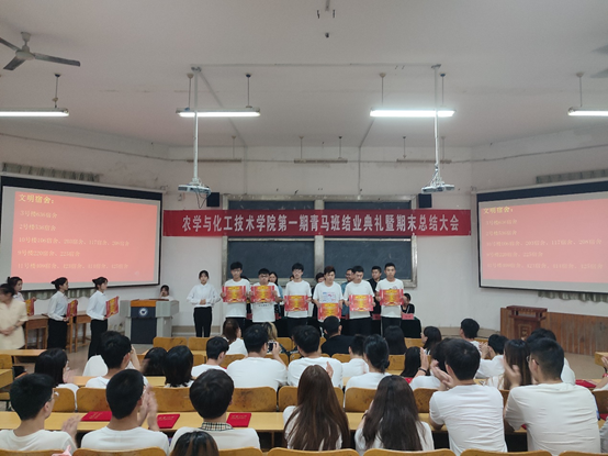 6月29日,农学与化工技术学院第一届青马班结业大会暨期末总结表彰大会在2号教学楼一楼多媒体举行。农学与化工技术学院经理宋继梅、副经理胡鹏、团总支书记董立斌、各辅导员、青马班全体学员和各班级代表同学参加活动,活动由董立斌主持。