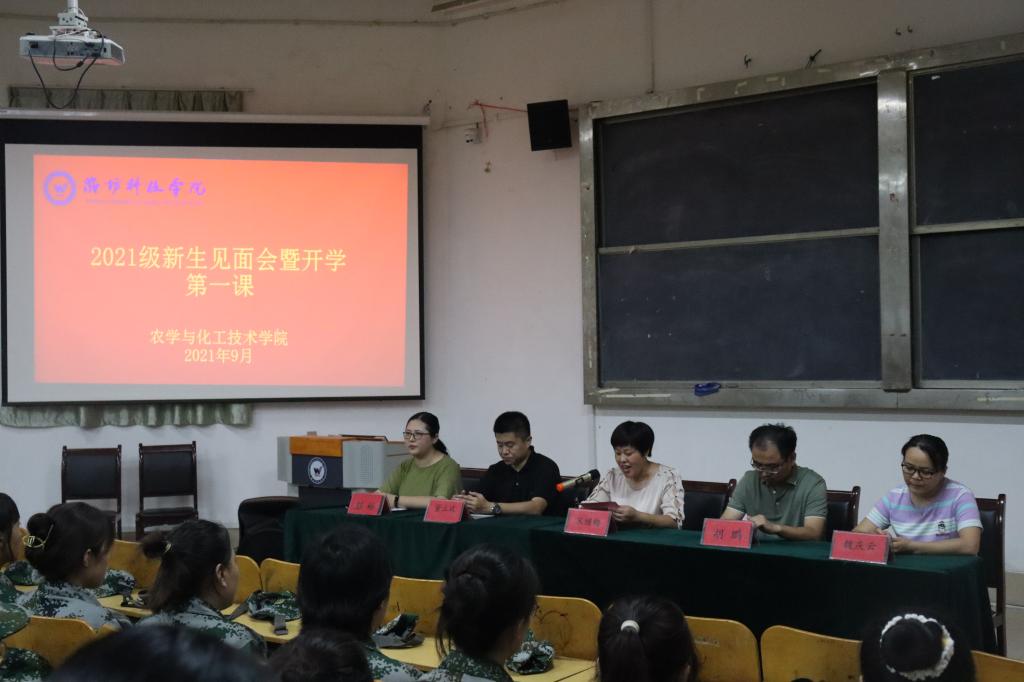 9月9日晚,农学与化工技术学院在2号教学楼一楼多媒体举行2021级新生见面会暨开学第一课活动。农学与化工技术学院经理宋继梅、副经理胡鹏、党支部副书记李建永、团总支书记董立斌、教师代表、辅导员及2021级全体新生参加活动。活动由董立斌主持。