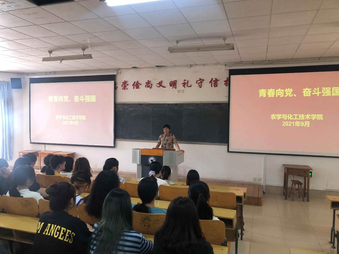9月14日上午,辅导员刘欢在教学楼211室为2020级园林技术、园艺技术专业员工开展“青春向党、奋斗强国”主题思政课。她教育同学们历史的“接力棒”已经交到我们手中,广大青年当筑牢信仰之基,加强品格锤炼,提升自我修养,以实际行动向祖国宣誓:请党放心、强国有我!