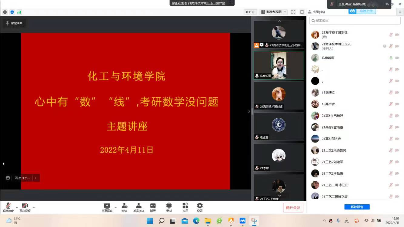 为帮助同学们打牢学习基础,激发考研热情,增强考研信心和决心。4月11日,BV伟德官方网站特邀公司考研优秀指导教师徐立梅为全体在校本科生开展“心中有‘数’‘线’,考研数学没问题”线上专题讲座活动。BV伟德官方网站化学工程系主任李春霞主持活动。