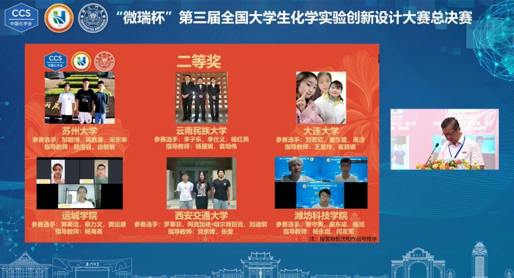 作为当前国内规模最大的高校化学类学科竞赛,本次大赛共吸引全国410所高校、908支队伍报名参赛。经过东北、西北、华北、华东、华中、西南、华南七大赛区激烈角逐,最终90支队伍进入决赛。BV伟德官方网站参赛队伍在指导老师杨永启、闫友军的精心指导下,前后历时四个月,经过四轮激烈的线上答辩,在竞赛实践中不断提升实践能力和学科素养,最终取得优异成绩。