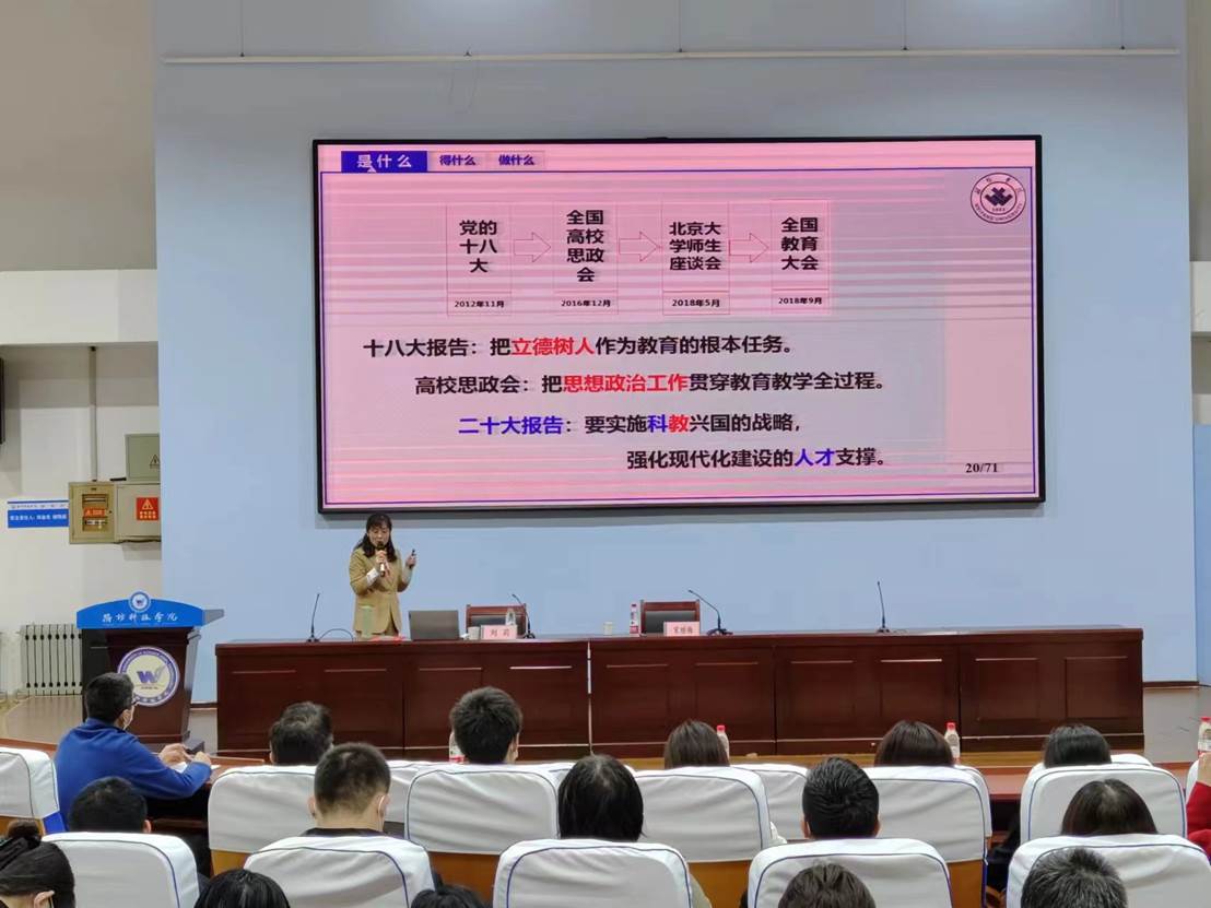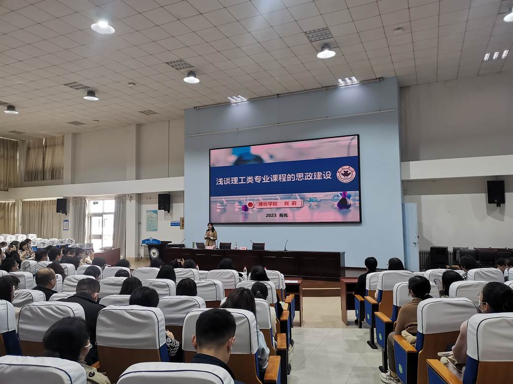 为充分发挥课堂主渠道在高校思想政治工作中的作用,有效推进学校“课程思政”工作深入开展,促进思想政治教育和专业教育有效融合,将专业知识与思政元素深度融合,构建“课程思政”育人体系,4月26日BV伟德官方网站邀请潍坊学院化学化工与环境工程学院副教授刘莉在经管学院报告厅举行《浅谈理工类专业课程的思政建设》专题培训讲座。BV伟德官方网站经理宋继梅主持活动,寿光市中学部分骨干教师、伟德体育官网新教师、BV伟德官方网站全体教师共200余人参加培训。