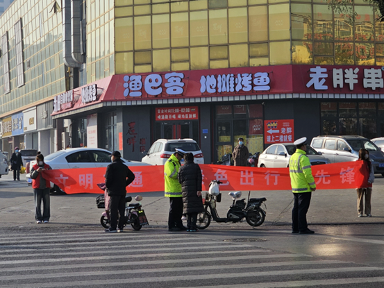 志愿者通过拉横幅、发传单、现场宣讲等方式,向市民宣传了文明交通的重要性和绿色出行的常识,倡导市民养成文明出行的好习惯。志愿者针对非机动车闯红灯、逆向行驶、上快车道、带人、乱停乱放等不文明行为进行了劝阻,对行人过马路不走人行横道、翻越隔离栏、闯红灯等行为进行了劝导,并向他们讲解文明交通相关知识,倡导他们遵守法规出行,自觉抵制各类交通违章行为。志愿者还在十字路口帮助儿童、老年人等行走不便的市民过马路,献出自己的一份爱心。