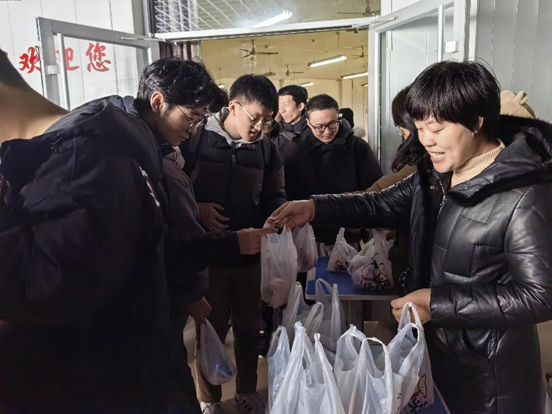 2024届考研学子在条幅上签下了自己的名字,象征着他们为梦想而奋斗的决心。学院领导为考生们分发了暖心礼物,为他们在紧张的备考中带来了一丝温暖。相信在学院领导和老师们的鼓励下,同学们一定能够坚定必胜信念、保持昂扬斗志,取得优异的成绩,实现自己的梦想。