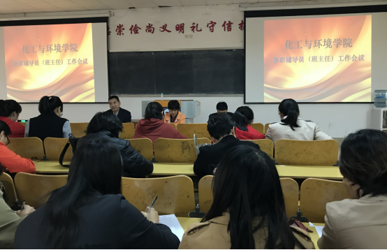 2018年10月16日下午,公司在教学楼二楼多媒体召开了兼职辅导员(班主任)工作会议。参加会议的有公司经理宋继梅、书记袁志永、党支部副书记魏巍及全体兼职辅导员(班主任)。