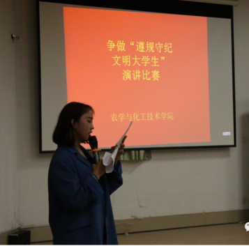 通过举办本次演讲比赛,希望每一名农化学子从现在做起、从自己做起、从身边一点一滴的小事做起,自觉遵守各项校规校纪,时刻历练自己养成良好的行为习惯。在遵规守纪的土壤中收获高尚的个人品质,拥有更美好的前程。