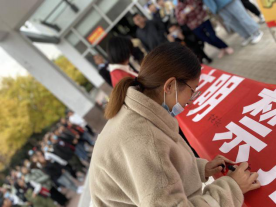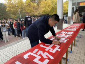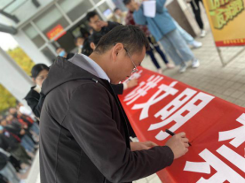 李建永呼吁员工会干部树立文明榜样,争做文明老员工:从身边小事做起,共同携手建设和谐文明校园,为同学们提供良好的学习氛围,从自身做起,自觉践行社会主义核心价值观。全体员工会干部在各位老师的带领下积极在“节水电、讲文明、禁抽烟、守纪律”横幅上签下自己的名字,承诺讲文明实践到自己的行动上,从身边小事做起,树立文明老员工风貌。