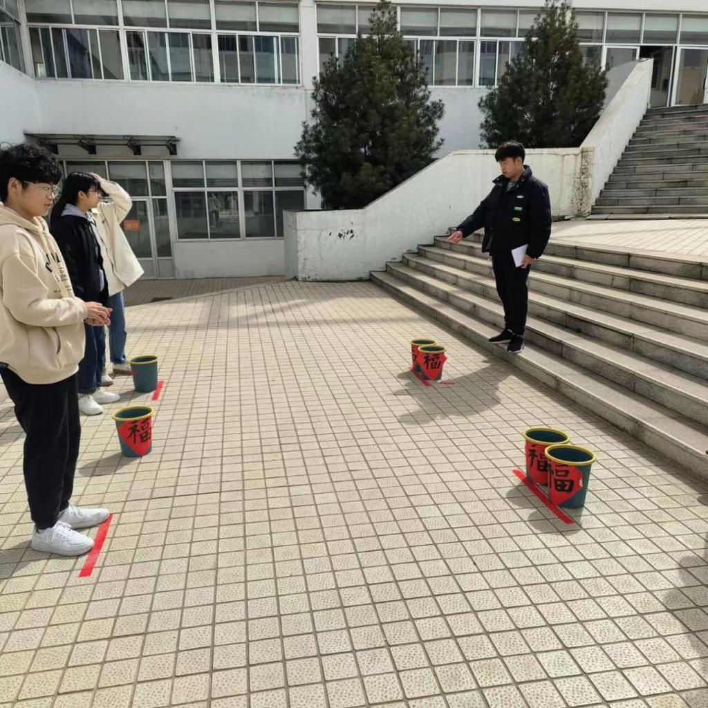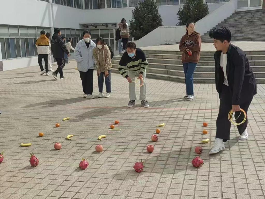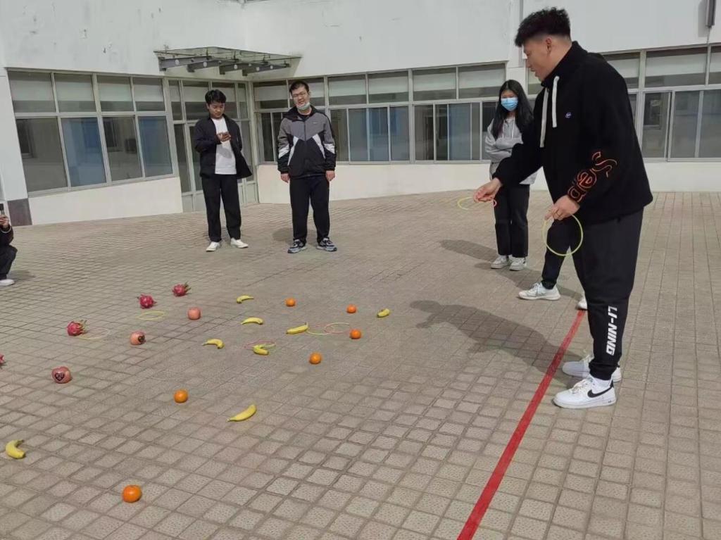 游戏正式开始前,参加活动的30位同学两两配对进行游戏,获胜的同学可优先选择。活动正式开始后,同学们个个精神饱满,在欢呼声中,“套”住幸福。随后的投球游戏稍加难度,提高了趣味性,激发了大家的好奇心,在一声声鼓励中,“投”出精彩。游戏结束后,同学们都互相拿着裁判员记录的标签去兑换相应的水果奖励。
