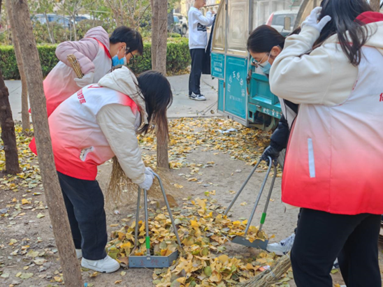 志愿者服务队与社区工作人员对接后,纷纷佩戴防护用具、分发劳动工具,到达社区指定区域进行清扫工作。大家利用扫帚与铲子等工具积极参与,收集落叶、清理积水、处理污渍……同学们团队合作,有条不紊地完成了清扫工作。清扫工作完成后,志愿者们还向社区老人们宣传生活中如何消除火灾隐患、消防安全、防诈骗等知识,用通俗易懂的语言劝导老人们在日常生活中要提升识骗意识、防骗能力与消防安全意识。