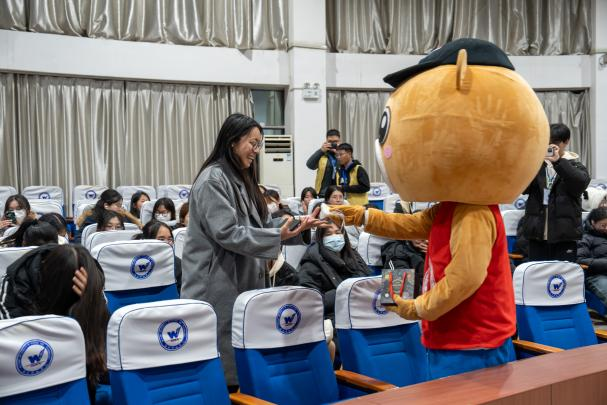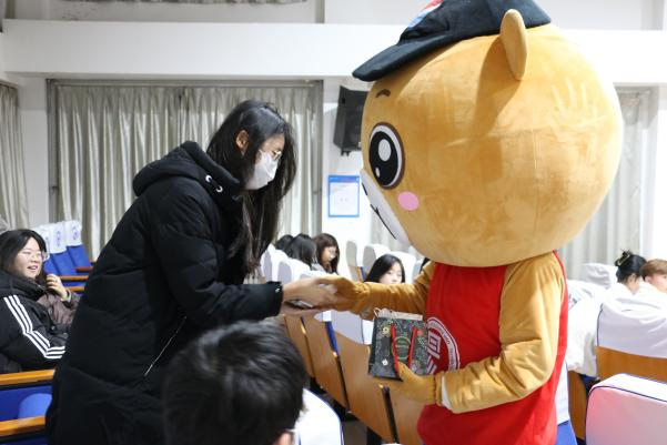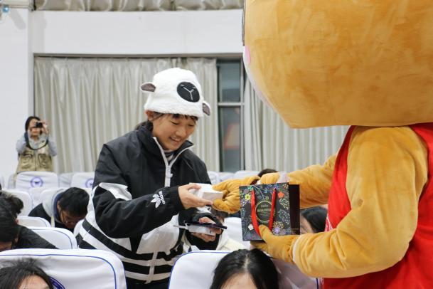 互动环节中,主持人就伟德体育官网文化知识与现场观众进行问答互动,增强了同学们对校园文化的了解与关注,答对者获得了BV伟德官方网站精心准备的工艺品。