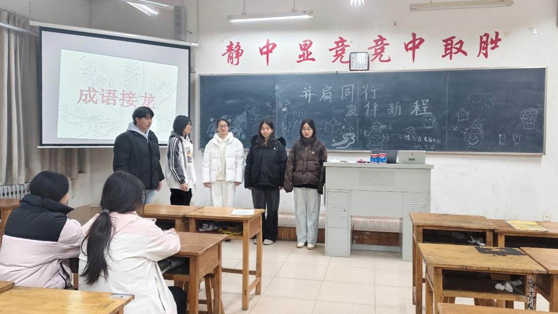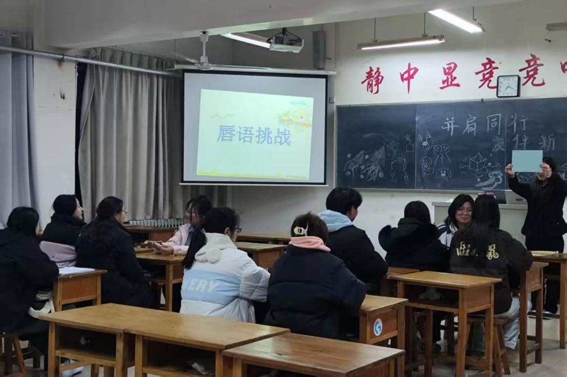 活动设置了两个趣味挑战环节:一是“唇语挑战”,各小组派一名成员背对题目板,其余小组成员则围聚在题目板前,仔细辨认关键词,随后他们用丰富的面部表情和夸张的口型,尽可能精准地将关键词通过无声唇语传递给猜词者,规定时间内猜词最快的小组获胜。二是“成语接龙”,主持人给出起始成语,各小组用上一个成语的尾字作为下一个成语的开头,小组成员们围坐一起,激烈讨论,迅速从脑海中搜索合适的成语,依次接龙,说出第十个成语即结束,用时最短者获胜。
