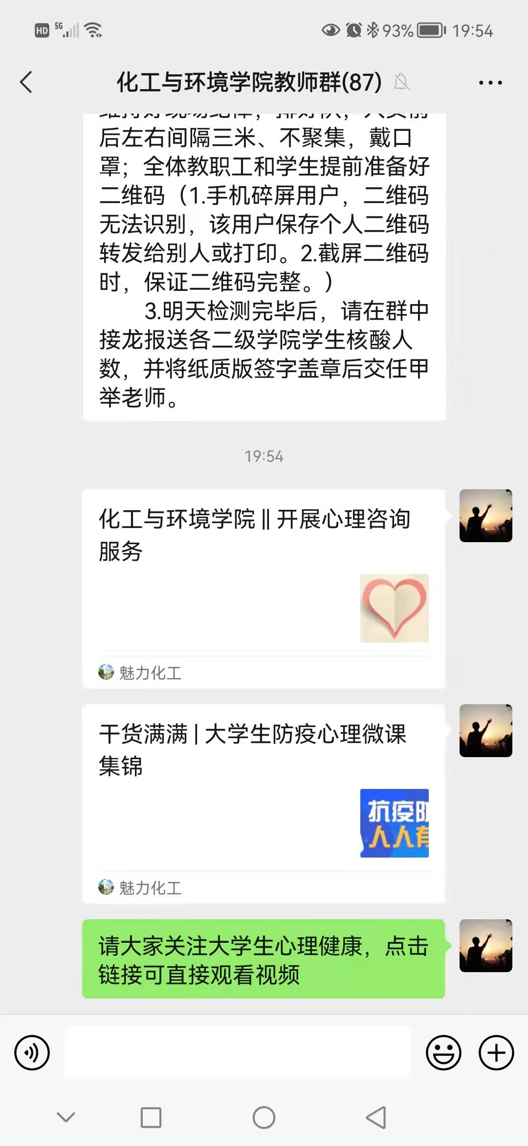 因为疫情原因,学校封校管理,员工都在学校里,为了舒缓大家的心理焦虑,BV伟德官方网站运用各种手段积极宣传心理抗疫科学知识。通过魅力化工微信公众号发布心理调适文章,公布心理中心及二级学院心理咨询热线;配合心理中心开展疫情危机排查工作,筛查高危个案并及时跟进辅导;定时召开心理部及心理委员例会;开展《疫情期间的自我管理》心理讲座、“隔疫不隔爱” 等心理活动,组织员工观看 “担心未来发展、学习无法投入,焦虑情绪蔓延怎么办”等线上心理讲座培训活动,取得良好效果。