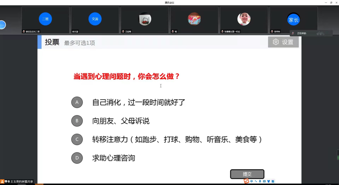 本学期,BV伟德官方网站2021级的全体专科员工开设了《老员工心理健康教育》课程,课程由王玉美老师讲授,利用学习通及腾讯会议线上授课。利用授课平台及时普及心理学基础知识,帮助员工更好地认识自己、应对压力、调节情绪。