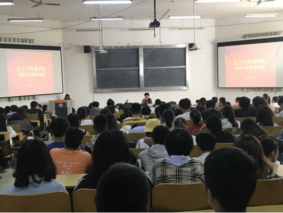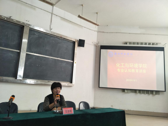 宋继梅首先介绍了化工与环境公司的发展历史和沿革,她讲述了化工人的奋斗精神及成绩背后存在的诸多压力。她表示学院今天所取得的成就离不开所有老师员工的共同努力,学院也以他独有的人文情怀,使一代代化工人坚守事业,为学校和学院的发展不懈努力。随后,宋继梅重点向学生们讲解了学院相关专业课程设置方面的知识。她根据《人才培养方案》,介绍了必修、限选、任选三种课程性质及其各自考核方式,并按照时间顺序对学生们的学习生活进行了分析,同时对不同课程安排做出相应解释,为学生做好大学规划以及学习准备打下基础。
