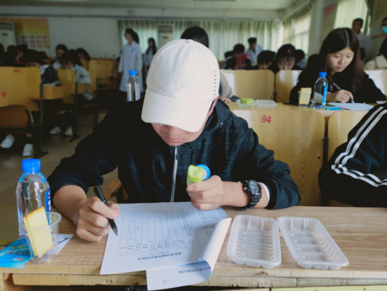 同学们观察黄瓜的外形和色泽,嗅闻黄瓜的香气,品尝黄瓜的味道,感受咬下黄瓜的清脆声响,最后记录下感受并给予喜好度评价。品鉴不同品种的黄瓜要漱口,吃苏打饼消除口中涩味。全国蔬菜质量标准中心蔬菜品质感官评价与分析实验室通过同学们的感官评价,筛选出喜欢的蔬菜品质指标,利用仪器分析使抽象化的品质指标变得数字化,最终服务于蔬菜品质认证服务。