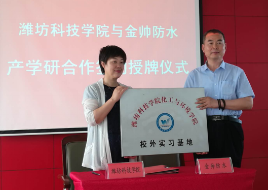 为进一步推进校企合作,提高人才培养质量,为员工搭建更好的学习实践平台,6月19日上午公司与山东省金帅防水材料有限公司举行了校企合作签字暨校外实习基地挂牌仪式。山东省金帅防水材料有限公司总经理郑国令、我院经理宋继梅、副经理刘芳芳及部分教师出席本次活动。