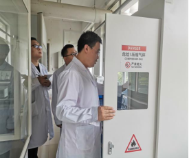根据《山东省教育厅关于组织开展 2022 年度高等学校实验室安全检查工作的通知》,6月8日省厅专项人员对化工与环境实训中心药品室、实验室、气瓶柜等进行检查,教务处处长张志军、实践教学管理中心主任吴金鹏、副主任桑明照陪同检查,检查指出高压气瓶要有检查记录、使用记录以及维修记录;危险源要定期进行清查等,实训中心对检查中出现的问题已进行整改。