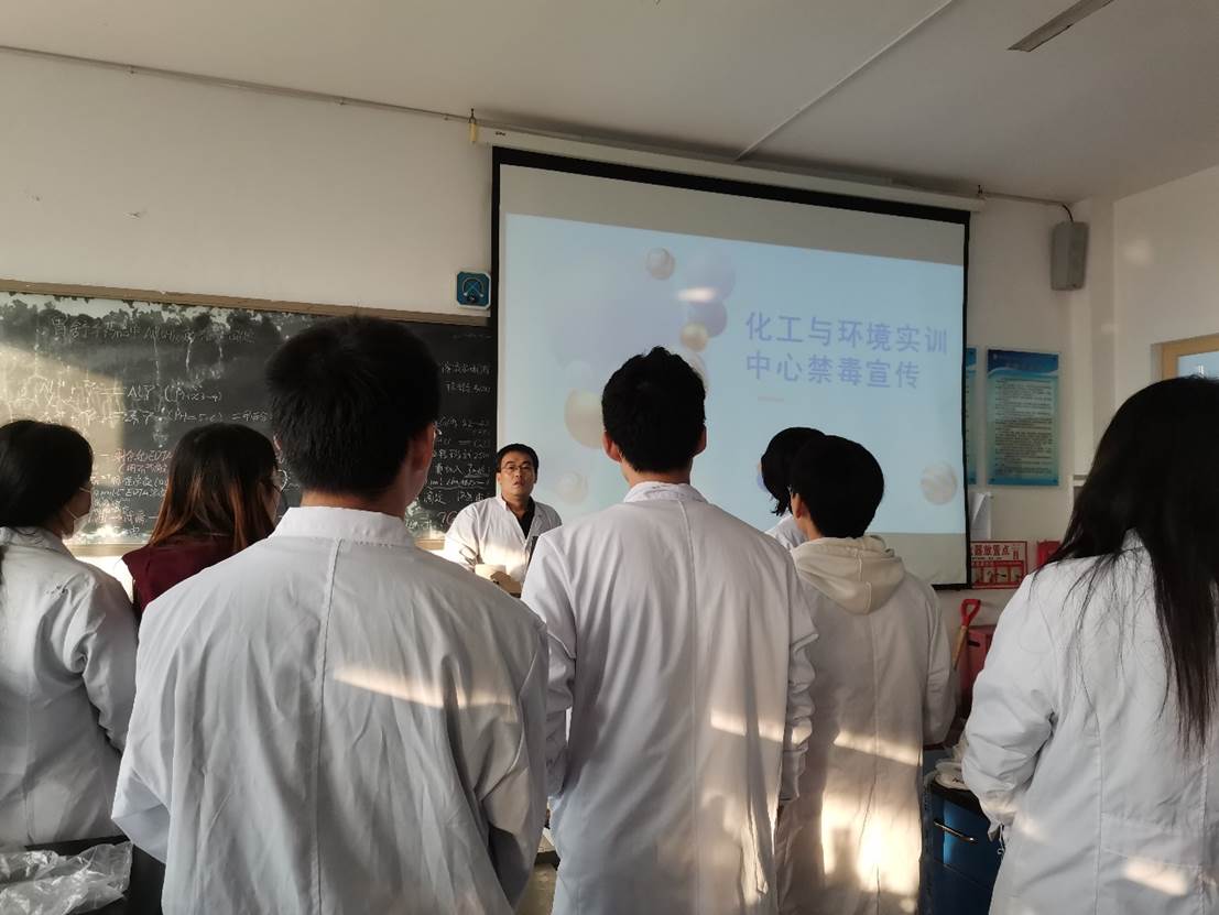 化工与环境实训中心主任王淼用通俗易懂的语言,为同学们讲解了什么是毒品、毒品的危害、青少年吸毒的原因以及青少年如何有效预防毒品危害等方面的内容。通过案例、图片、视频等,让同学们形象地了解何为毒品,毒品对个人、家庭、社会的巨大危害等,提高了同学们辨别毒品的能力和防毒拒毒的安全意识。