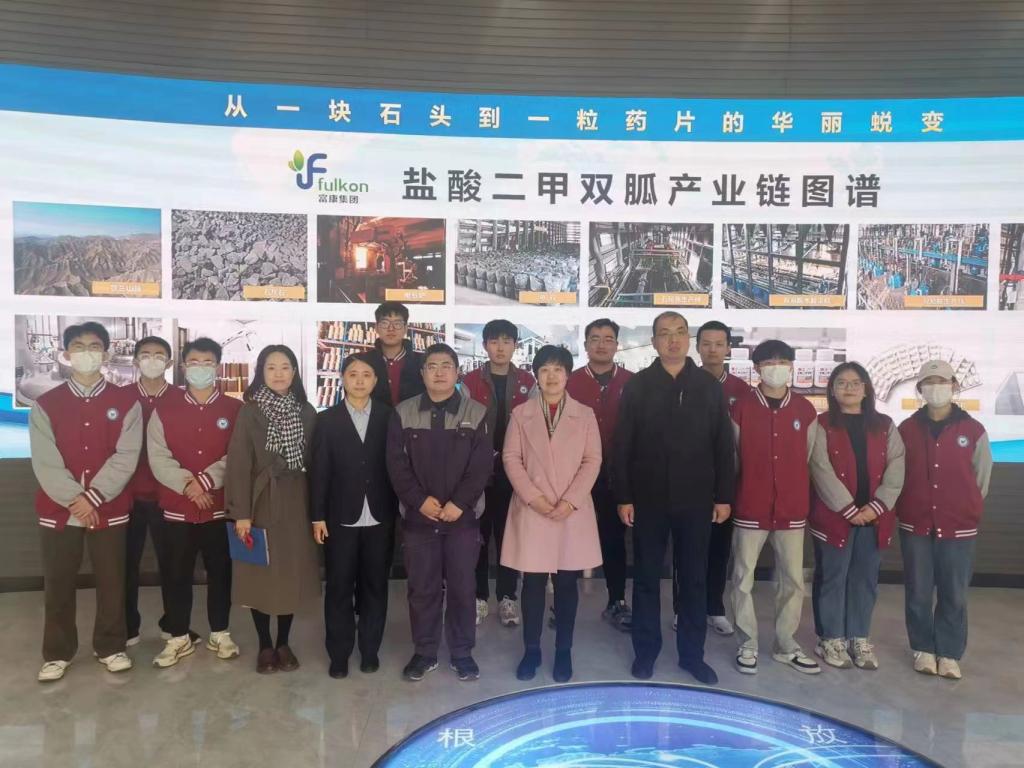 宋继梅一行参观了富康新产品研发中心和现代化分析检测平台,详细了解了盐酸二甲双胍的全产业链建设情况,参观了高标准的成品药生产、制剂、成片的生产线。企业负责人介绍了近年来制药行业发展特点,希望公司以需求为导向,大力培养适应地方经济发展的化工与环境类专业高水平应用型人才。宋继梅介绍了公司在研博士团队、科研平台及与企业组建联合科研攻关团队情况和公司产品资源、员工专业实习、专业社团活动、就业等情况,希望通过此次合作深化产教融合,切实提高员工的动手能力和综合素质。